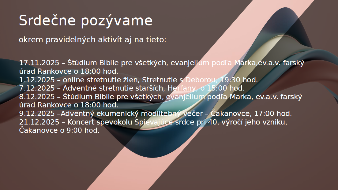 Srdečne ste však vítaní aj na ostatných našich aktivitách!